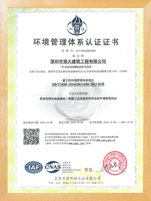 深圳市深大建筑工程有限公司,成立于2017年,注冊(cè)資本5000萬(wàn),總部位于深圳市寶安區(qū)中心地段。公司擁有地基基礎(chǔ)工程專業(yè)承包壹級(jí)資質(zhì),市政公用工程施工總承包二級(jí)資質(zhì),是一家一體化現(xiàn)代型企業(yè)。公司重視企業(yè)內(nèi)部管理與發(fā)展,嚴(yán)格實(shí)施ISO管理體系,率先通過了ISO9001質(zhì)量管理體系認(rèn)證、環(huán)境管理體系及、職業(yè)健康安全管理體系的認(rèn)證。為公司的長(zhǎng)遠(yuǎn)發(fā)展奠定了穩(wěn)健基礎(chǔ)。